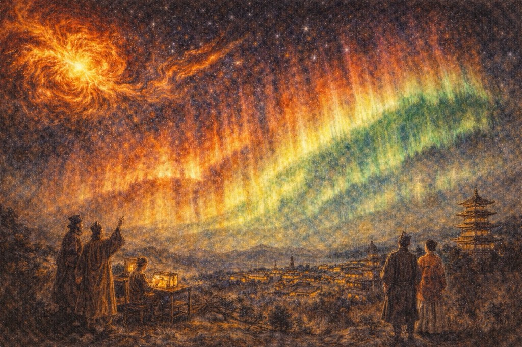 大規模な太陽嵐と低緯度オーロラの記録