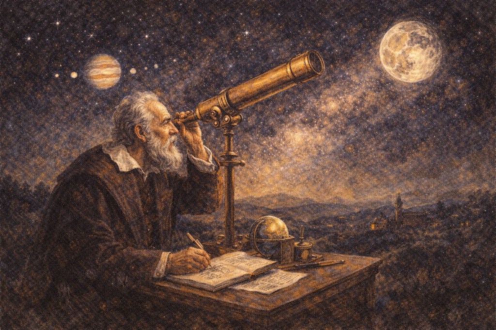 彼は望遠鏡観測によって木星の衛星や月面の凹凸を記録し、