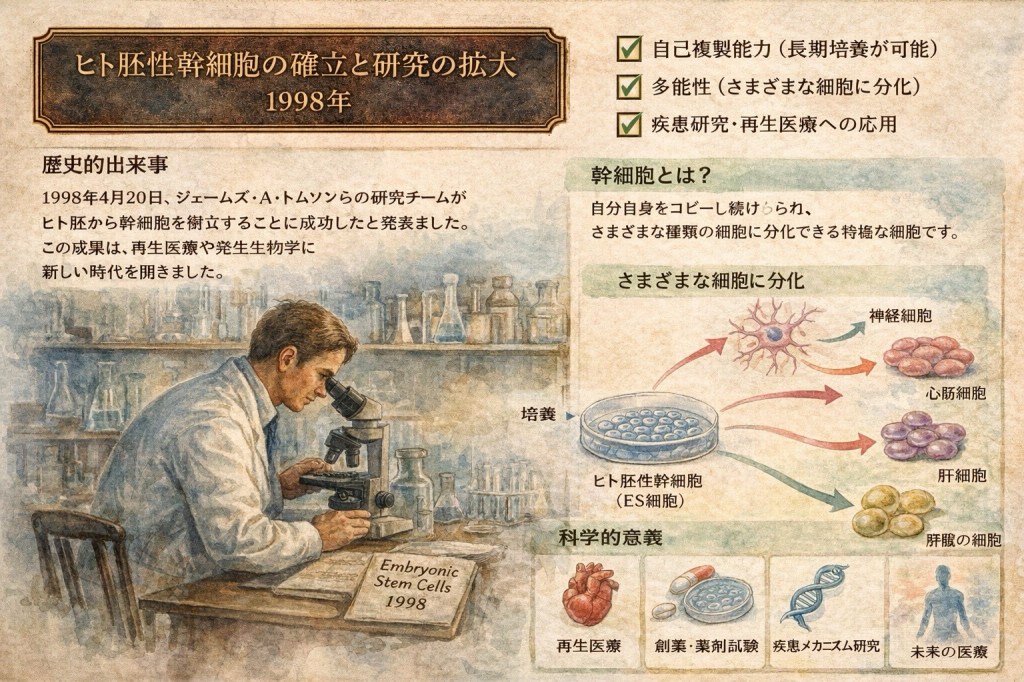 4月20日は、時間の測定・宇宙探査・生命科学がそれぞれ静かに前進した日として捉えられます。代表的な3件を挙げます。
