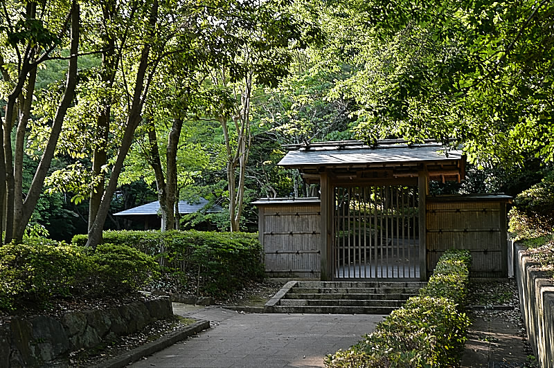 コンコルドから亀山トンネルにいたるには、浜松城公園の脇をとおり冒険公園を横切って歩きます。児童ブールや、茶室・松韻亭の入り口など、自然に恵まれた風情のある小道です。