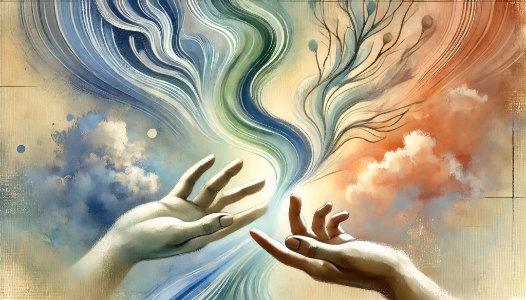 手という具体的な肉体的行為は、それを導く精神的な力によって統括されていることを示唆しています。