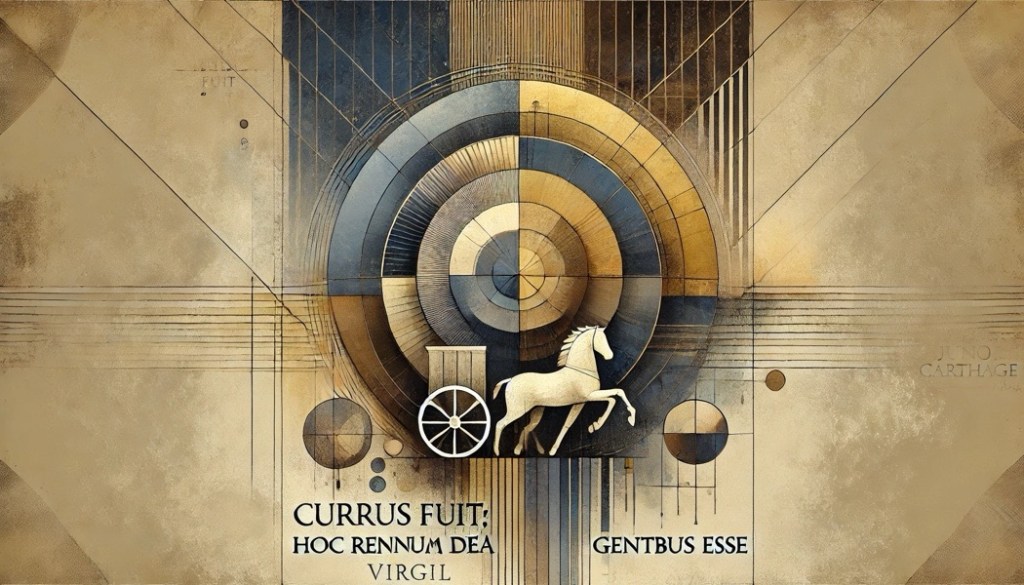 総訳: 「(カルタゴは)戦車(の都)であった。女神(ユーノー)は、もし運命が許すならば、この王国が諸民族の(支配する王国)となることを、すでにその時から望み育てているのだ。」