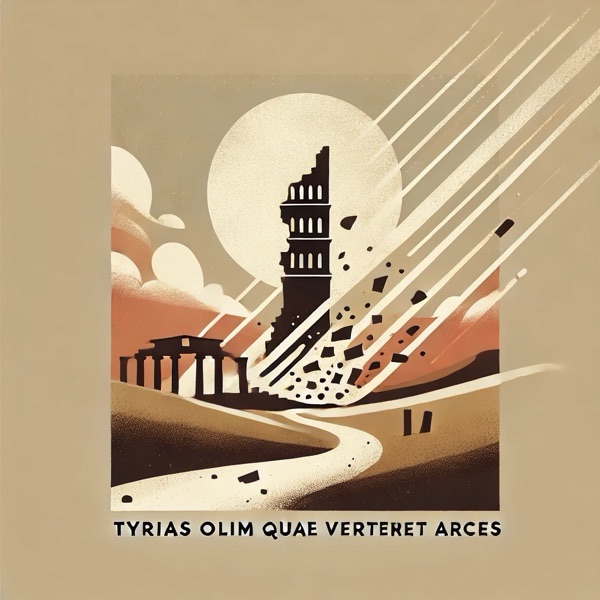 この短い詩的な一行は、歴史的な出来事や神話的な破壊を暗示しているように見えます。