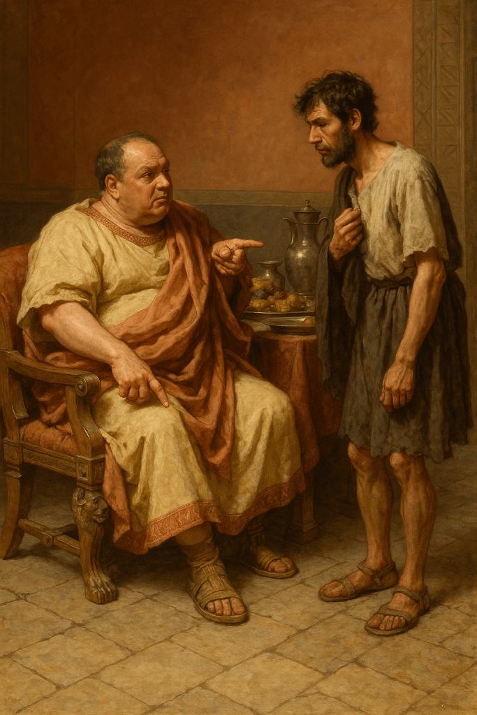 これは、伝統的なローマの家父長制(mos maiorum)の理想(貞節・謙遜・節度)と、それに反する現代的価値観(快楽・贅沢・自由)の対立構造です。