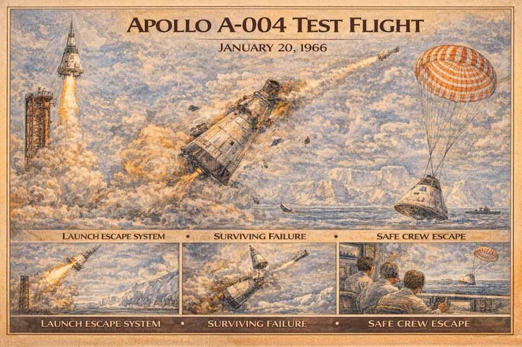 有人宇宙開発で本質的なのは「飛ぶ」よりも、異常時に乗員を生還させる設計です。A-004は、その“最後の砦”を実機で限界条件に近い形で検証した点が大きい。 これは安全工学として、設計(機構)・制御(姿勢)・運用(シーケンス)を一体で評価する試験で、後の有人ミッションの「安全に対する設計思想」を押し上げました。