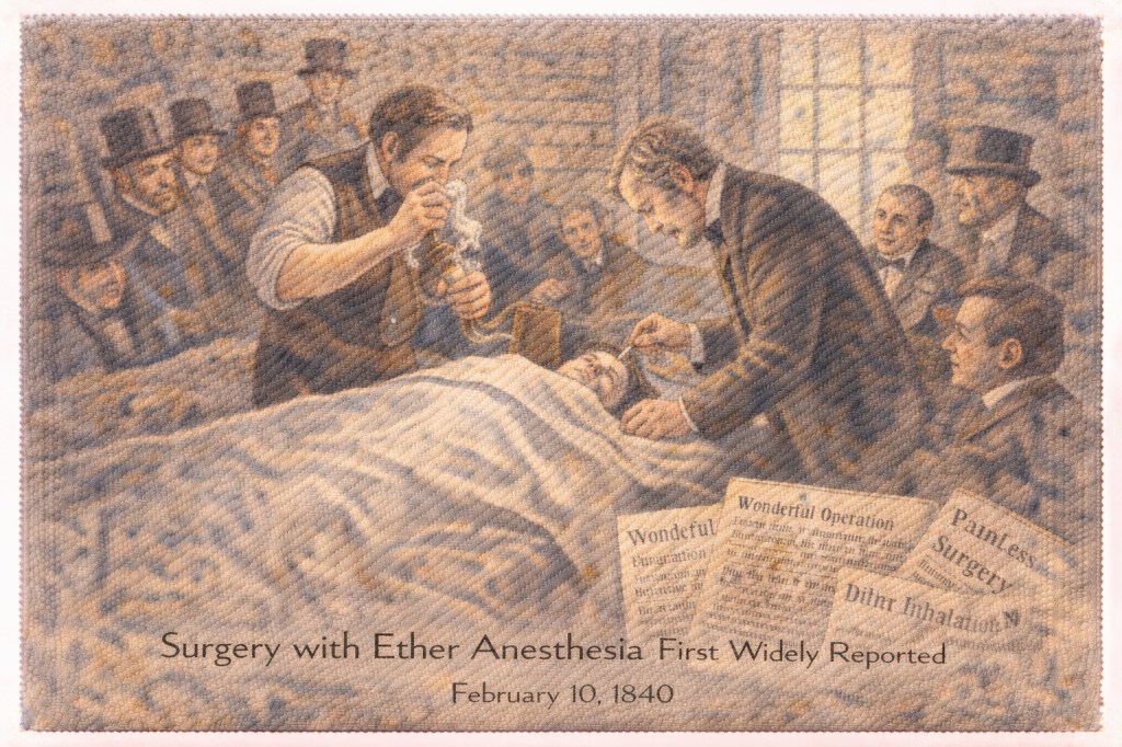 1840年2月10日、アメリカ東海岸のいくつかの新聞で、エーテル麻酔を用いた外科手術の成功が広く報じられました。