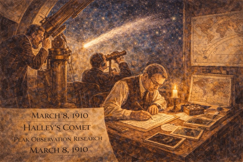 1910年はハレー彗星の回帰年でした。3月頃には世界各地の天文台が観測体制を整え、彗星の位置測定やスペクトル観測が盛んに行われました。