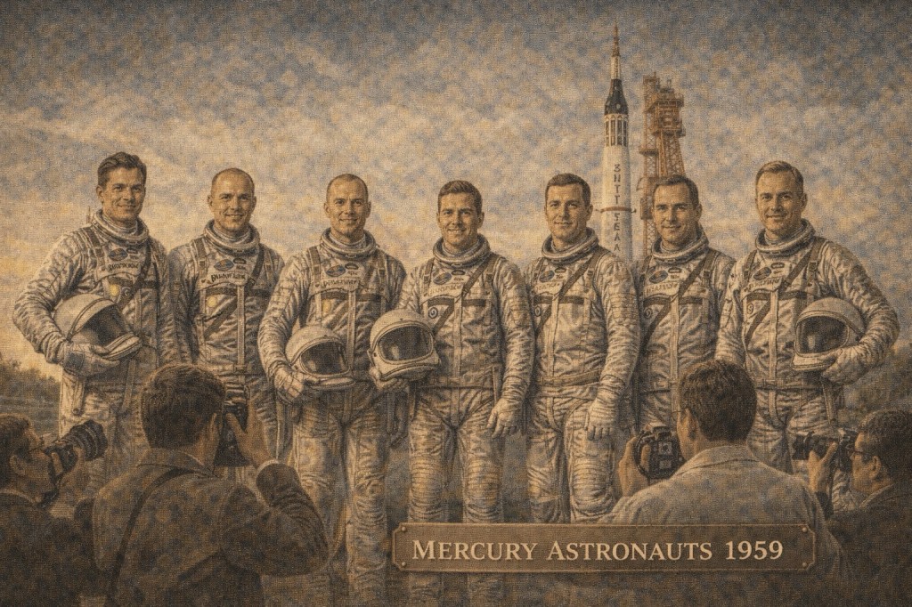 1959年4月9日、アメリカは最初の宇宙飛行士7名を発表しました。