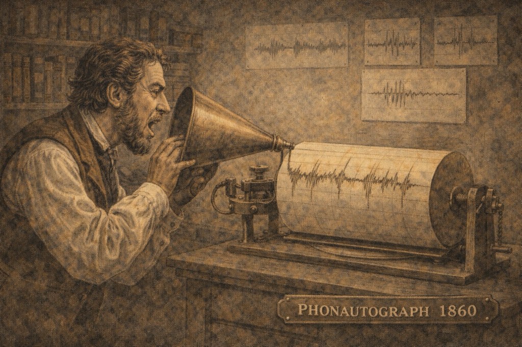1860年4月9日頃、音の波形を記録する装置「フォノトグラフ」により、