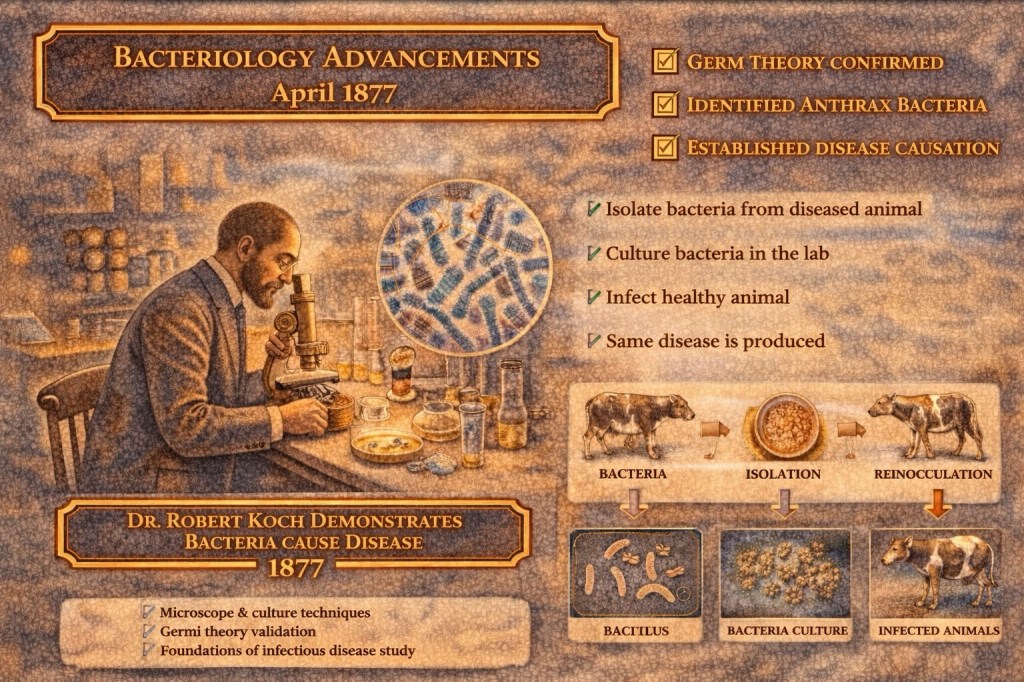 コッホは炭疽菌の研究を進め、