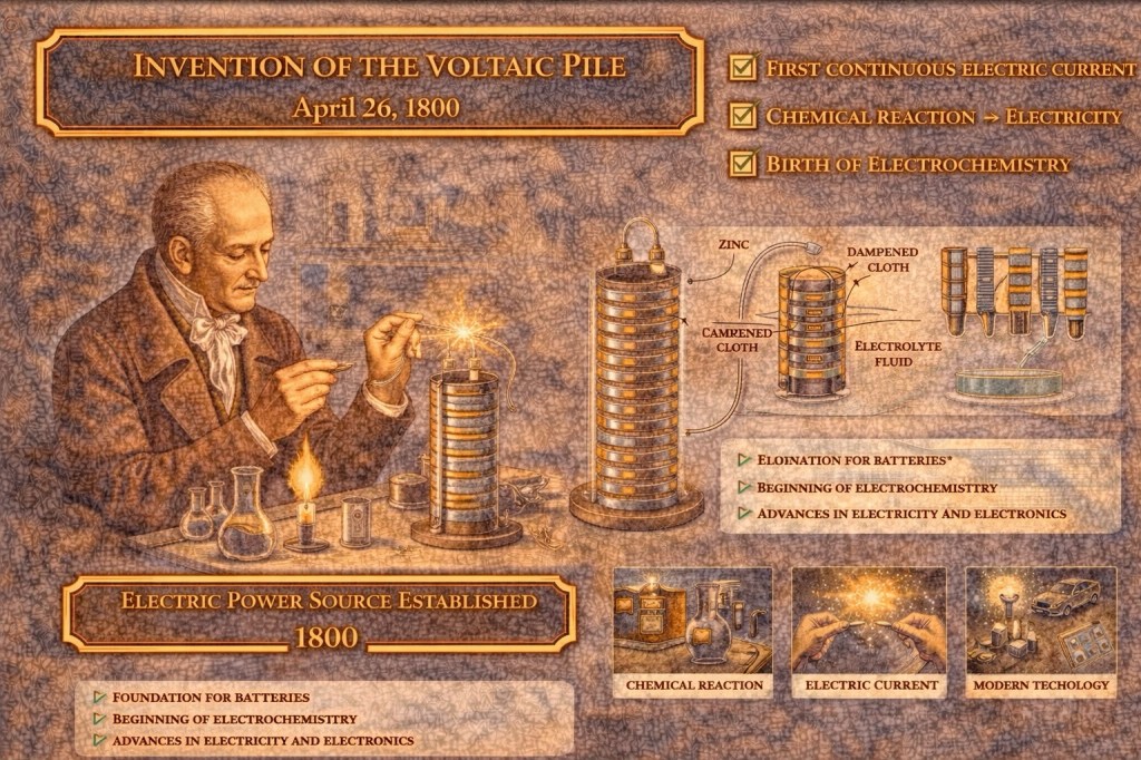 アレッサンドロ・ボルタによる電池の発明(ボルタ電堆)