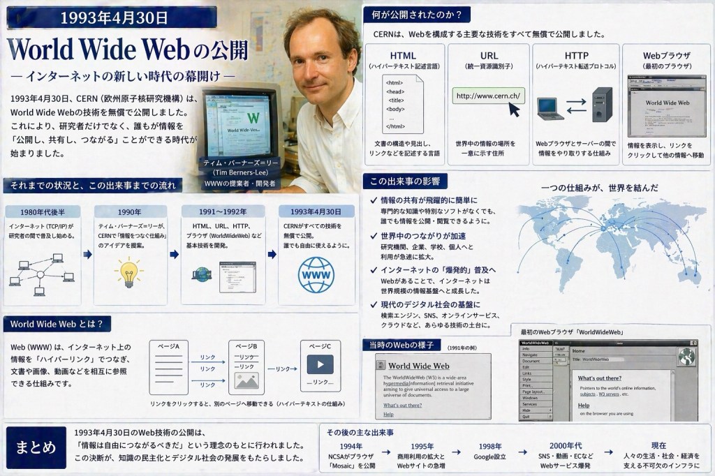 CERN World Wide Web公開(インターネットの一般化)
