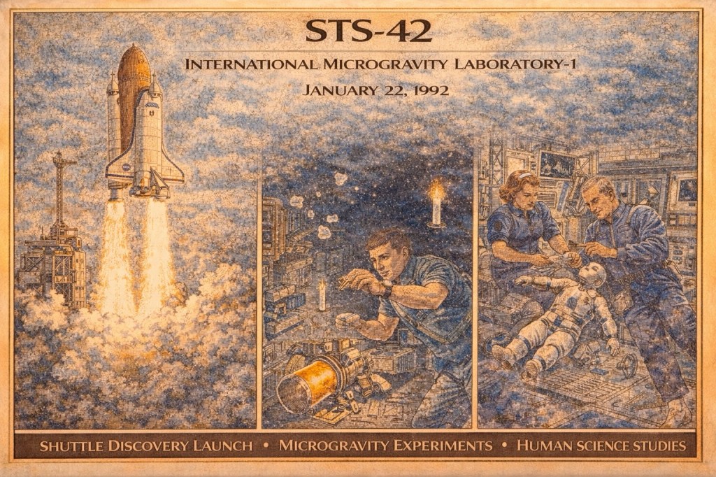 1992年1月22日、スペースシャトル**ディスカバリー(STS-42)**が打ち上げられ、**IML-1(International Microgravity Laboratory-1)**として微小重力下の各種実験が行われました。